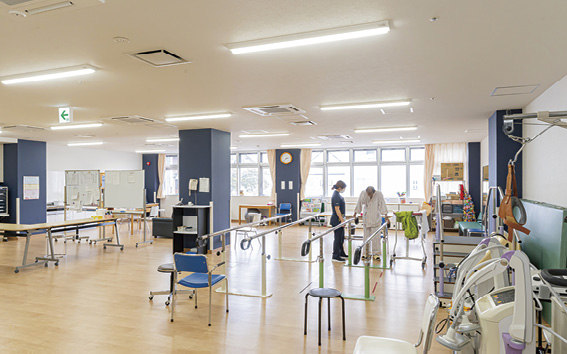 診療においては、今まで通り「地域のかかりつけ医」として一般診療を継続する一方で、消化器内科に力を入れており、検診も含めて上部・下部の内視鏡検査が可能。実績を誇る糖尿病治療においては患者も多く、検査技師がいるためすぐに検査結果が出せるという強みをもつ。リハビリテーション科では、脳梗塞後や呼吸器、整形、難病など全般的なリハビリに対応。理学療法士・作業療法士・言語聴覚士がそろっているため、幅広く手厚いリハビリが可能だ。